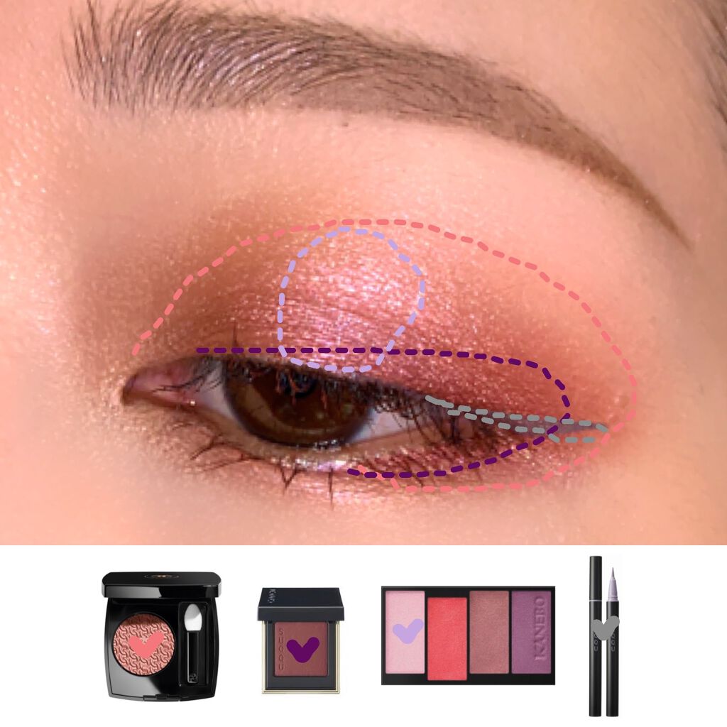 今回の新色は"まぶたに濡れたような光沢を放つ艶、光を操る立体感をプラスしリュクスなまなざしを叶えてくれる"というプリズムフォーミュラ。 確かにいつもとはちょっと違う…良いですこれ🫶❤️ ヌメッと面で光るようなツヤ感✨ テクスチャーは刻印ありタイプ、ツヤはクリームタイプに近いと思います🥰 要は刻印ありとクリームの良いとこ取りですね! ゴールドと柔らかいレッドの組み合わせ。アプレスキーとエレクトリックチェリーの中間のような色合い🤔 ゴールドとピーチカラー。今回の3色の中では一番黄みが強い。 青みがかったローズが可愛い。ぱっと見はわからないけど左上にみんな大好き青ラメが…!!