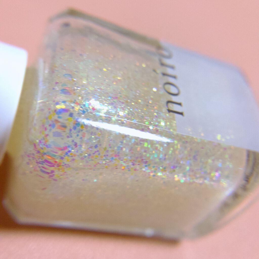 noiro /S012thesacredshineほぼ色は付かない乳白色のクリアベースに、イリディセントに輝くセロファンみたいな、大小2種類のサイズの四角い透明グリッターが沢山入っています。虹色のキラキラがとても可愛い🌈✨🌟noiroは日本...