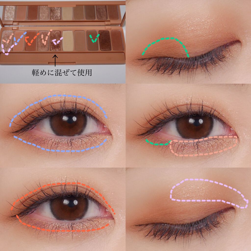 - 肌なじみの良い、鮮やかな発色で目元を華やかに彩る捨て色なしの10色アイシャドウパレット 異なる3種のテクスチャーを自由に組み合わせて、グラデーションも思いのままに。 NEW 2023.4 ・肌トーンにあう配色を詰め込んだトレンドカラー 肌トーンに合わせて、自分に似合うトレンドカラーが楽しめる♡ パーソナルカラー×トレンドカラーの掛け合わせパレットで、デイリーメイクもスペシャルメイクも気分にあわせてなりたい自分に! ・むにゅっとジェル質感ラメで高密着、煌めく目元 パレットの中でもポイントとなる大きめ粒子のラメは、ジェルのような新質感で落ちにくく肌にぴったりと密着します。キラキラとした目元をキープします。 ・使うカラーは大きめに!リアル捨て色なしパレット ベースやラメのよく使うカラーと締め色や濃い色等の減りが少ないカラーを異なるサイズで詰め込んだ、リアル捨て色なしパレット! <使用方法> 付属のデュアルシャドウブラシでベースカラーをまぶた全体に塗り広げます。細いブラシでグラデーションや目尻、アイライン、涙袋などのポイントカラーをのせて仕上げます。
