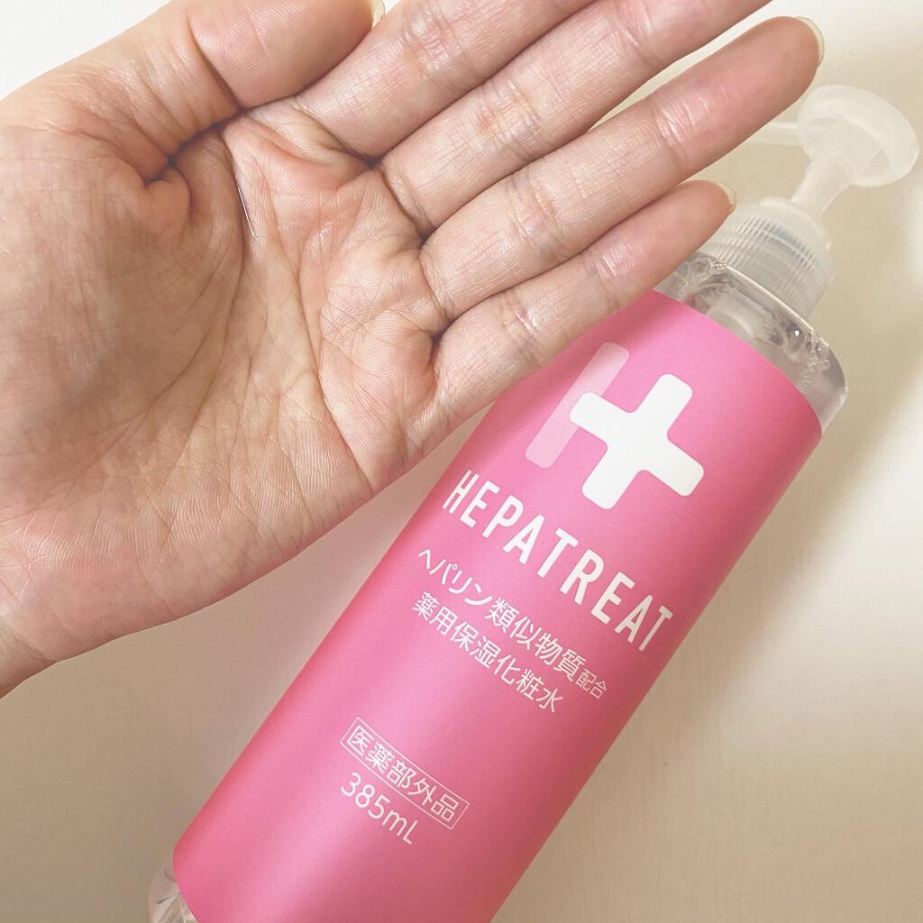 - ヘパトリートは保水有効成分のヘパリン類似物質と肌あれ有効成分のグリチルリチン酸ジカリウムを配合し、8つのフリーを実現。低刺激処方ながら高機能な化粧水です。さらに、薬用化粧水では珍しい大容量ポンプ(385mL)でとても使いやすく、赤ちゃんから大人まで、顔や全身の肌あれ・乾燥に使えます。 ■Wの有効成分 1.ヘパリン類似物質 顔・全身の乾燥を防ぐ 肌の乾燥による肌あれ/あれ性/皮膚を健やかに保つ/肌を整える/あせも/ひび/あかぎれ 2.グリチルリチン酸ジカリウム ニキビを防ぐ/肌をひきしめる/日やけ、雪やけ後のほてりを防ぐ/しもやけ/かみそりまけを防ぐ ■肌にやさしい低刺激処方<8つのフリー> 無香料/無着色/無鉱物油/無動物油/パラベンフリー/アルコールフリー/石油系界面活性剤フリー/シリコンフリー ※パッチテスト済み ※スティンギングテスト済み
