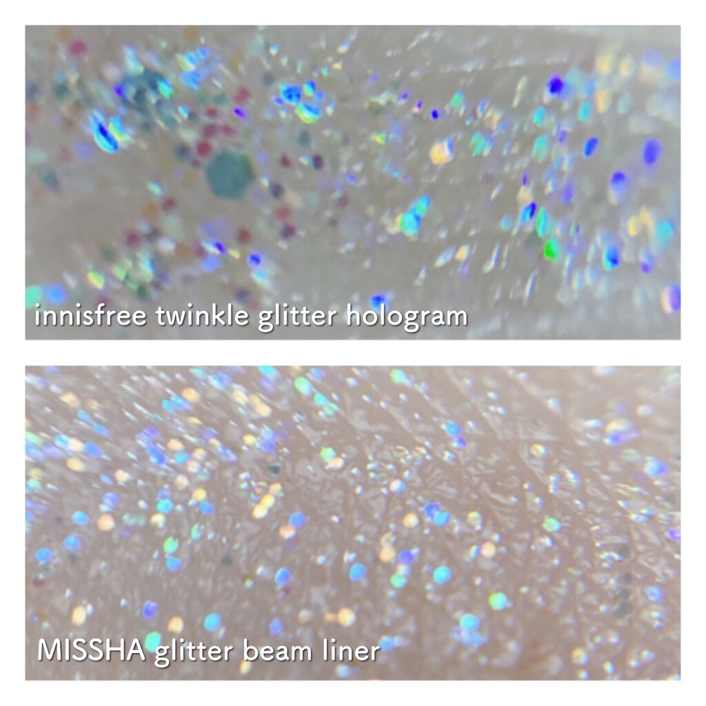 自分が持ってるグリッター比較✨涙袋に使うなら...の基準で紹介していきます〜innisfreeトゥインクルグリッターホログラム🌟2番・はけ細くて塗りやすい!・ラメ落ちやすい大粒ホロが目に入ると痛い!・割と誰でも使いやすい配色だと思う!🌟3番・...