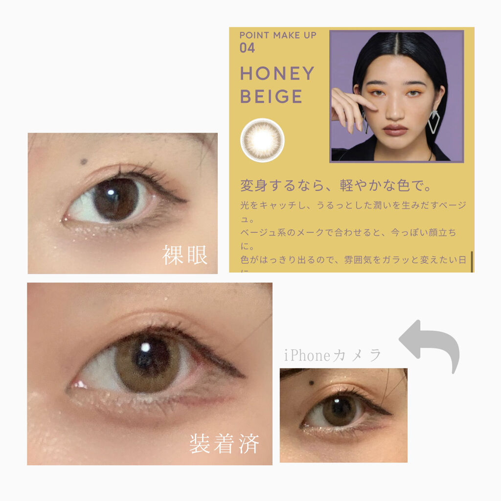 👀JINS1DAYCOLOR-HONEYBEIGE#ハニーベージュ光をキャッチし、うるっとした潤い。ナチュラルにトーンアップできる✨☑ワントーン明るい瞳になりたい☑ナチュラルに雰囲気を変えたい☑ハーフ顔になりたいちゅるんとした質感で、透明感も...