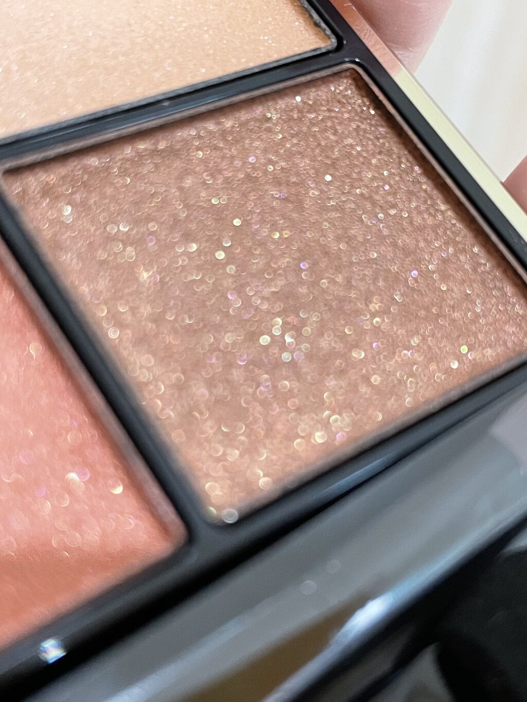 SUQQUは裏切らない‼️📣 ラメがキランキランなのに上品で、 マットブラウンは使いやすくてもう言う事ない💁♀️ 右上のブルーは目頭のくぼみと 目頭側に虹をかけるように入れました🌈 イエベでも使える青ラメ最高🥰
