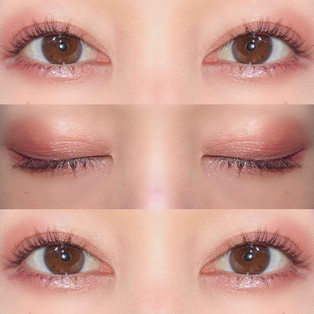 よくパレットのなかで明るいカラーをベースにまぶたに広く塗ることが多いのですが、パール感のあるカラーを避ける🙆♀️! パール感たっぷりの明るいカラーは涙袋に使うぐらい光を集めてぷっくり見せてくれるので、まぶたに広く使うと腫れぼったく見えがち😓 目元を明るくみせてくれたり、次に使うアイシャドウをぼかしやすくしてくれるけど、すっ飛ばしてメインのカラーを塗っちゃう✊🏻❤️🔥 涙袋にはたっぷり塗ってぷっくり見せる🙆♀️💕 シルキースフレアイズのマットタイプはすごく優れているな〜と感じました☺️💗 赤やオレンジなどは、入れすぎると腫れぼったく見えやすいので、見せたいカラーは下まぶた目尻にのせて色をたのしむ♡♡ パール感なしの透けマットだけじゃ物足りない… そう感じさせない華やかなラメが左上に入っているので黒目上と涙袋にのせるとすごく可愛い仕上がりに😍! 厄介な左右差のお陰でマットアイシャドウが好きになりました😌💕