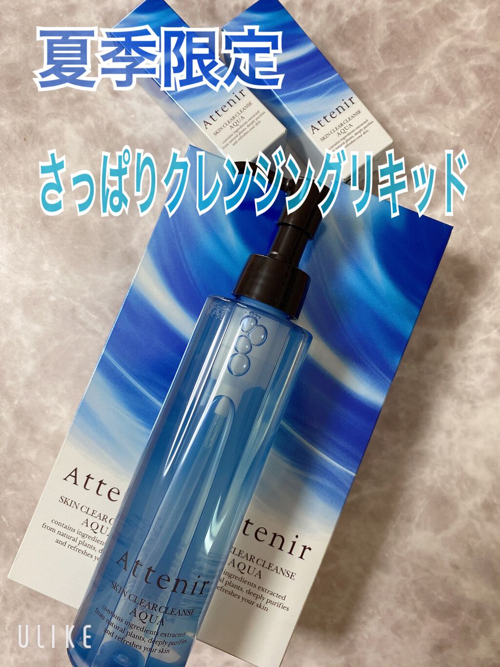 愛用クレンジングの夏季限定登場😎✨アテニアスキンクリアクレンズアクアアロマタイプこちらは通常のオイルタイプではなくリキッドタイプになります。ボトルの青が綺麗!夏!って感じ🌻笑通常のものと効果は変わらず、肌ステインも除去してくれるけど洗い上がり...
