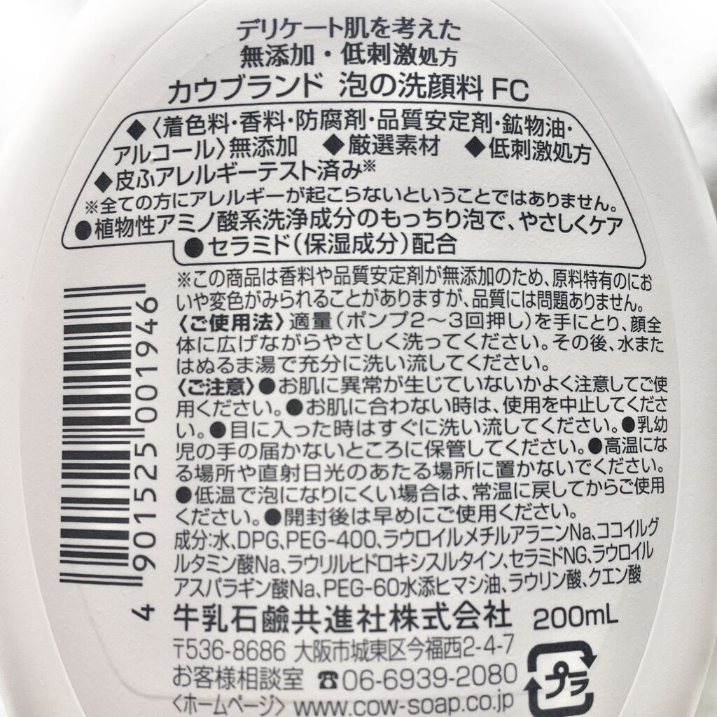 商品詳細情報カウブランド無添加 泡の洗顔料
