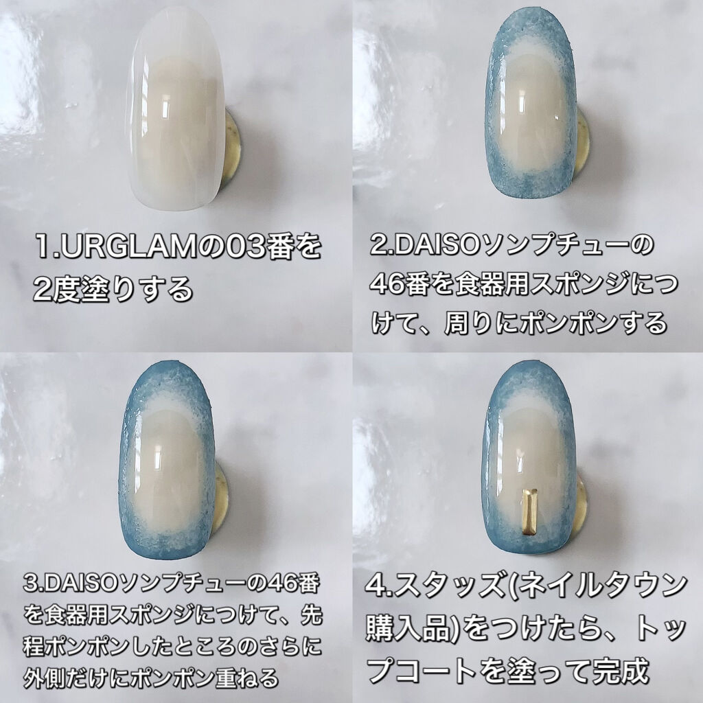 こんにちわ♡今回はキャンメイクのマニキュア2色で出来る、簡単グラデネイルのご紹介です💕先端にかけて白くなるベイビーブーマーは、美爪に見えるのでグラデの中でもとても人気デザインですよね(*´꒳`*)やり方は画像を参考にしていただければと思います...