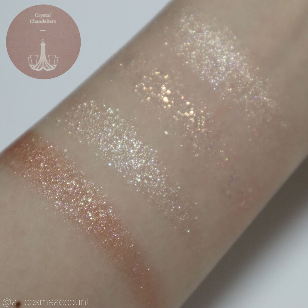 - 4色のアイシャドウを重ねるだけで理想のグラデーションが手軽に完成。深みを与えるマットや上品な艶めきをプラスするシマー、華やかなラメを組み合わせれば、こなれ感とナチュラルさを持ち合わせた目元に。シャンデリアのように華やかなグリッターやラメをのせて、毎日のメイクをもっとスペシャルに!