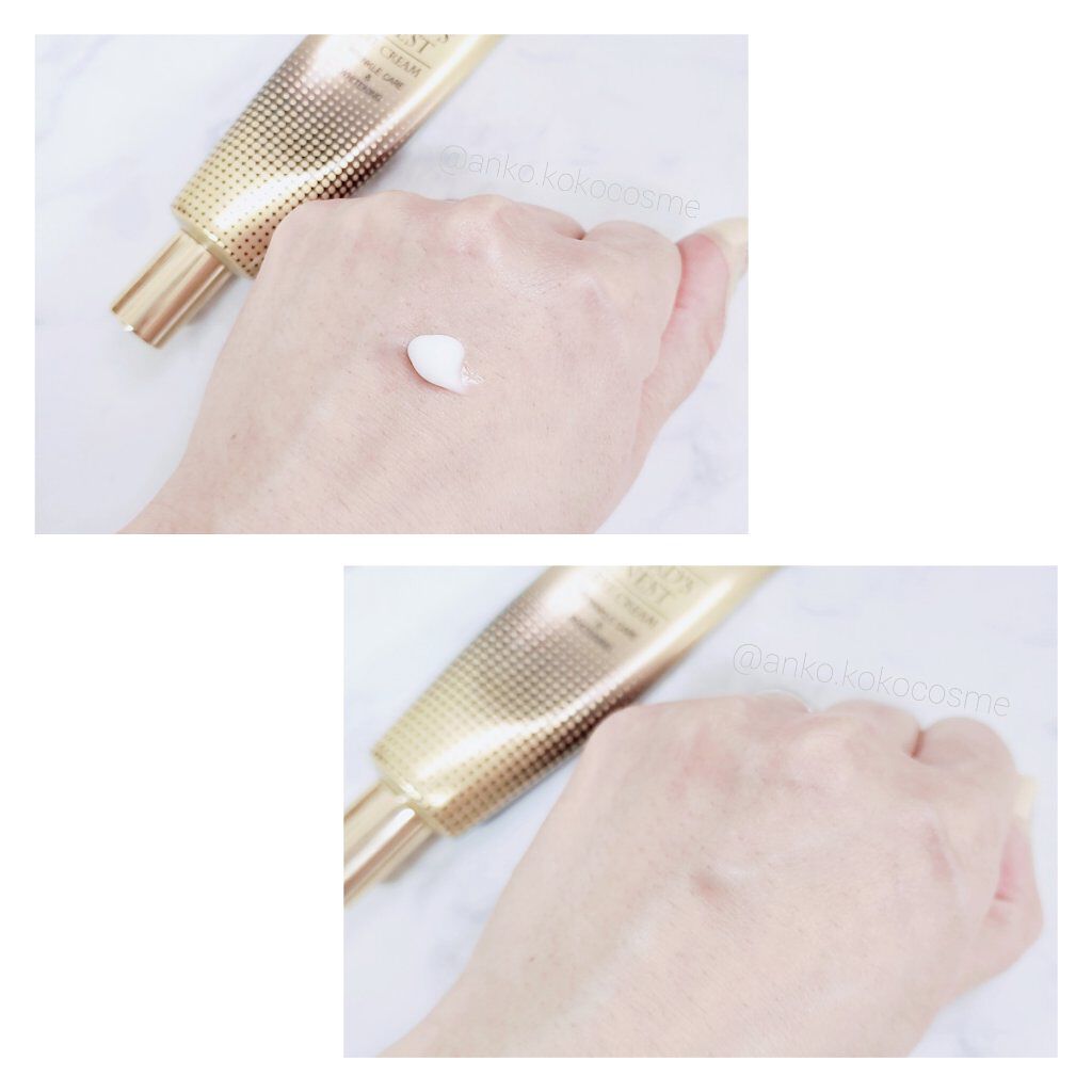 ウミツバメの巣エキスが配合されていて、スキンケアアイテムとしても人気の成分。肌にうるおいを与えてくれると言われています。 翌朝も感じるBling Bling感✨ 乾燥しやすい部分にたっぷり使える! リピート決定! 最後までしっかり使い切るためにチューブをカットしてスパチュラで取り出しました✂✨