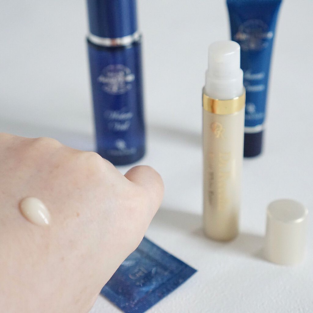 肌に潤いを与え、シミ・そばかすを防いでくもりのない肌へ導く美容液 いちごシロップみたいな見た目が好き、ビタミン12由来の色なんだそう とろみがあるけどメイク前にも使えるのがいいなと思うベタつきにくいテクスチャー