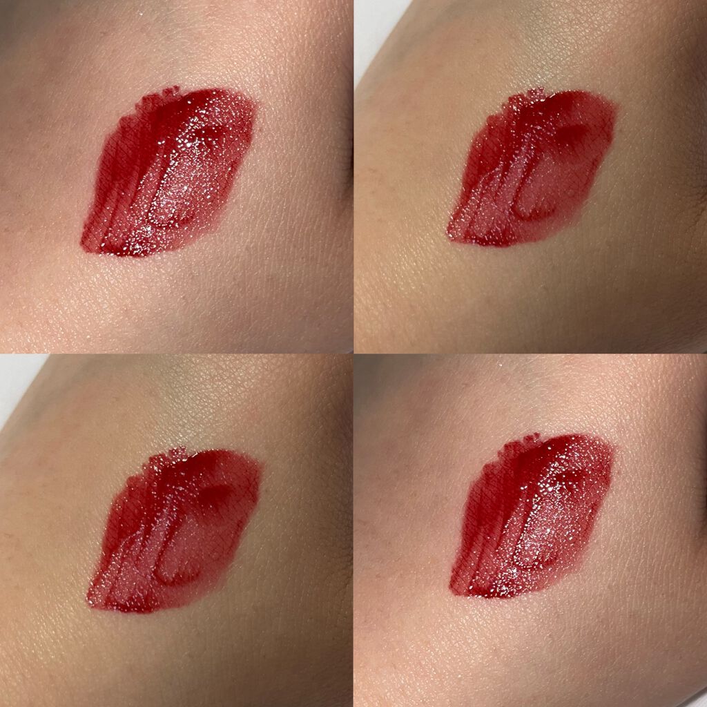 塗りたては、ほんのりくすみ系のチェリーレッドの印象🍒発色は良い✨肌馴染みは良い🙆♀️ 軽くティッシュオフして時間が経つとほんのりブラウン気味のチェリーレッドに感じました🙆♀️ リピートはどうかなと思いますが、塗りやすいし、綺麗な色なので色々と試してみたいです😊