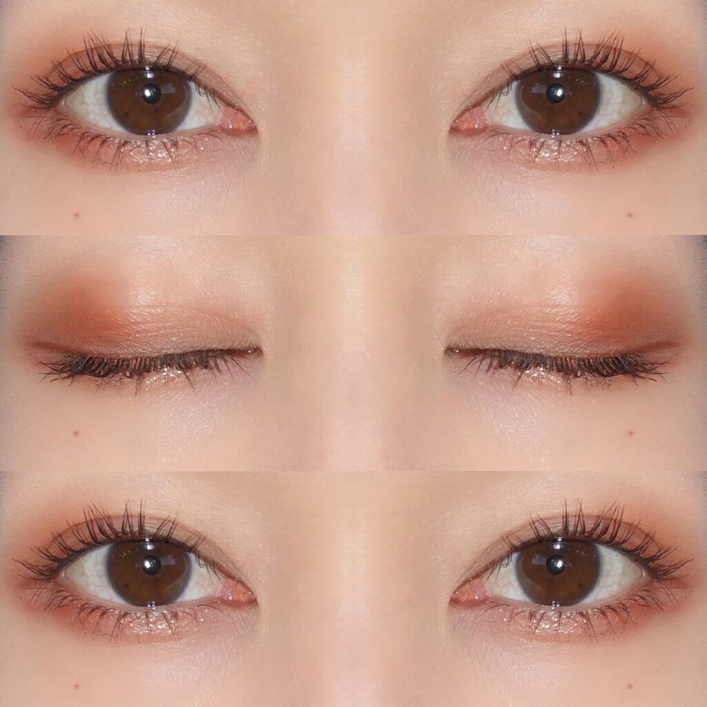 よくパレットのなかで明るいカラーをベースにまぶたに広く塗ることが多いのですが、パール感のあるカラーを避ける🙆♀️! パール感たっぷりの明るいカラーは涙袋に使うぐらい光を集めてぷっくり見せてくれるので、まぶたに広く使うと腫れぼったく見えがち😓 目元を明るくみせてくれたり、次に使うアイシャドウをぼかしやすくしてくれるけど、すっ飛ばしてメインのカラーを塗っちゃう✊🏻❤️🔥 涙袋にはたっぷり塗ってぷっくり見せる🙆♀️💕 シルキースフレアイズのマットタイプはすごく優れているな〜と感じました☺️💗 赤やオレンジなどは、入れすぎると腫れぼったく見えやすいので、見せたいカラーは下まぶた目尻にのせて色をたのしむ♡♡ パール感なしの透けマットだけじゃ物足りない… そう感じさせない華やかなラメが左上に入っているので黒目上と涙袋にのせるとすごく可愛い仕上がりに😍! 厄介な左右差のお陰でマットアイシャドウが好きになりました😌💕