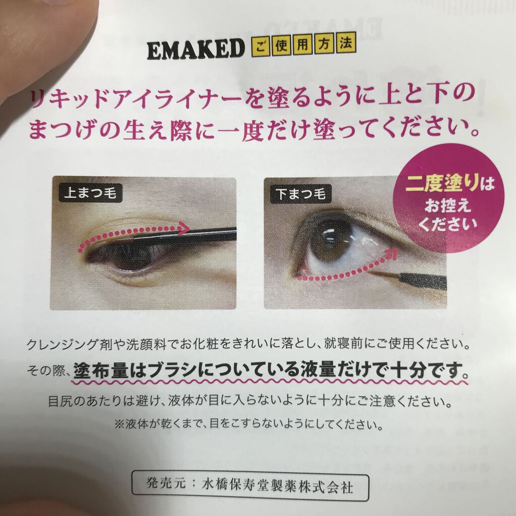 水橋保寿堂製薬 EMAKED まつげ美容液 まつ育はゆるゆるとしていたのですが本格的に始めようと思い立ちました 細いアプリケーターでアイラインを引くようにまつ毛の根元に塗布します👀💓 お値段の方が ¥6000+tax 私のしていたゆるゆるまつ育の時の2倍くらいのお値段するのですが効果は雲泥の差とのことで