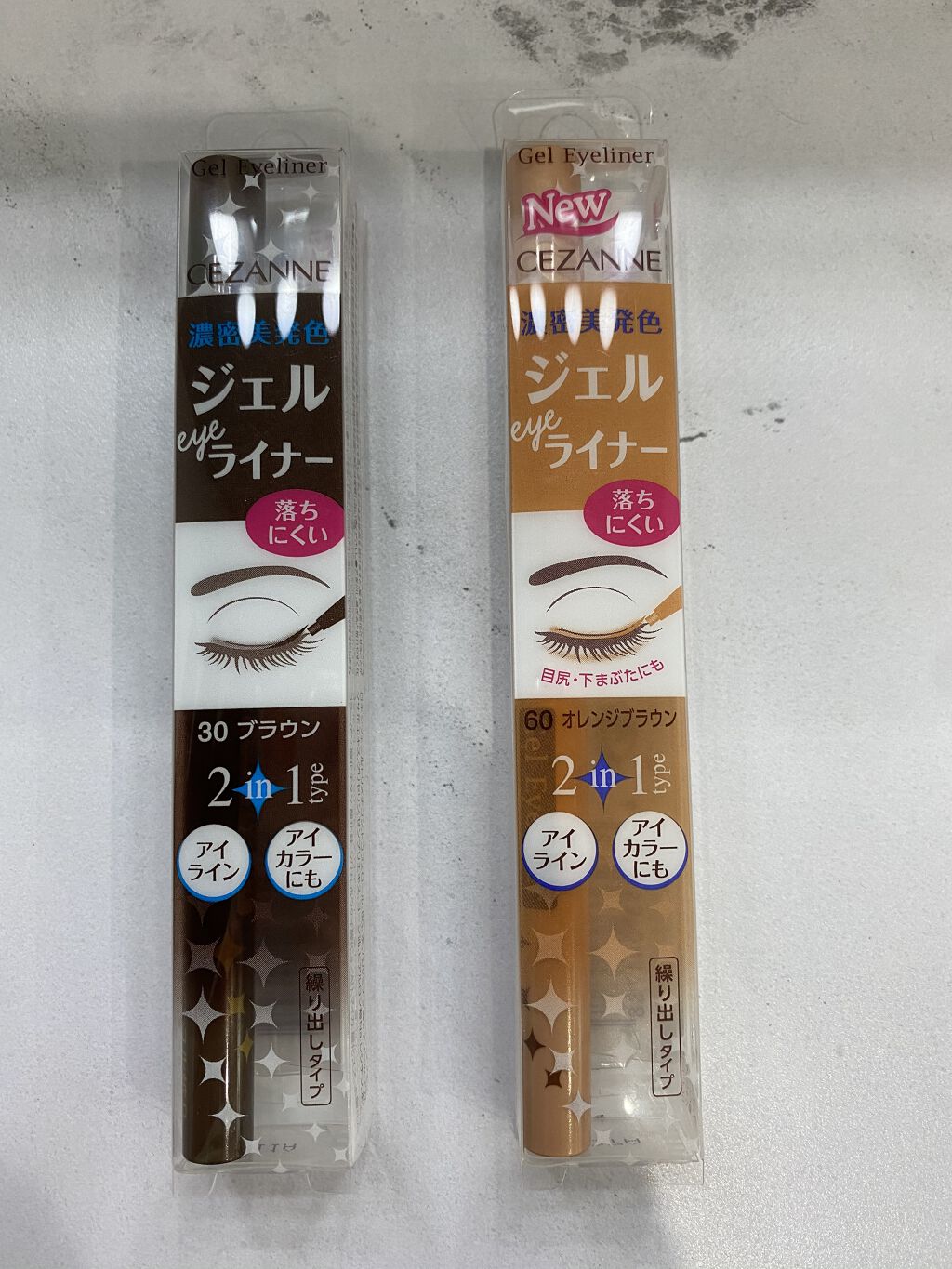 購入品紹介!【CEZANNEジェルアイライナー30ブラウン】¥550繰り出し式だけど繰り戻すこともできます。芯の太さは2mmぐらいです。発色は薄め。ラメが入っていてキラキラします。使い方次第で太線も細線も。ティッシュで何度も擦りましたが、意外...