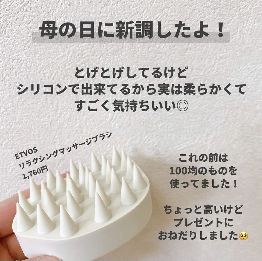 頭皮ブラシで頭皮ケア𓂃◌𓈒𓐍▫️使った商品エトヴォスリラクシングマッサージブラシ▫️どんな人におすすめ?頭皮やコリをほぐしたい人▫️イマイチなところ値段が少しお高め▫️良いところデザインがシンプルでお洒落!シリコンで出来ていてとげとげし...