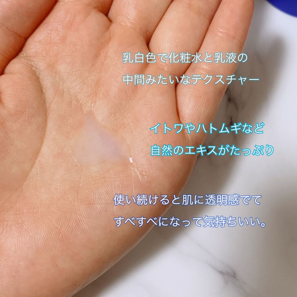 | 水っぽい乳白色のテクスチャーでバシャバシャと使えるのでさっぱりとした化粧水がお好きな人にはおすすめだと思います! | 詳細を見る |