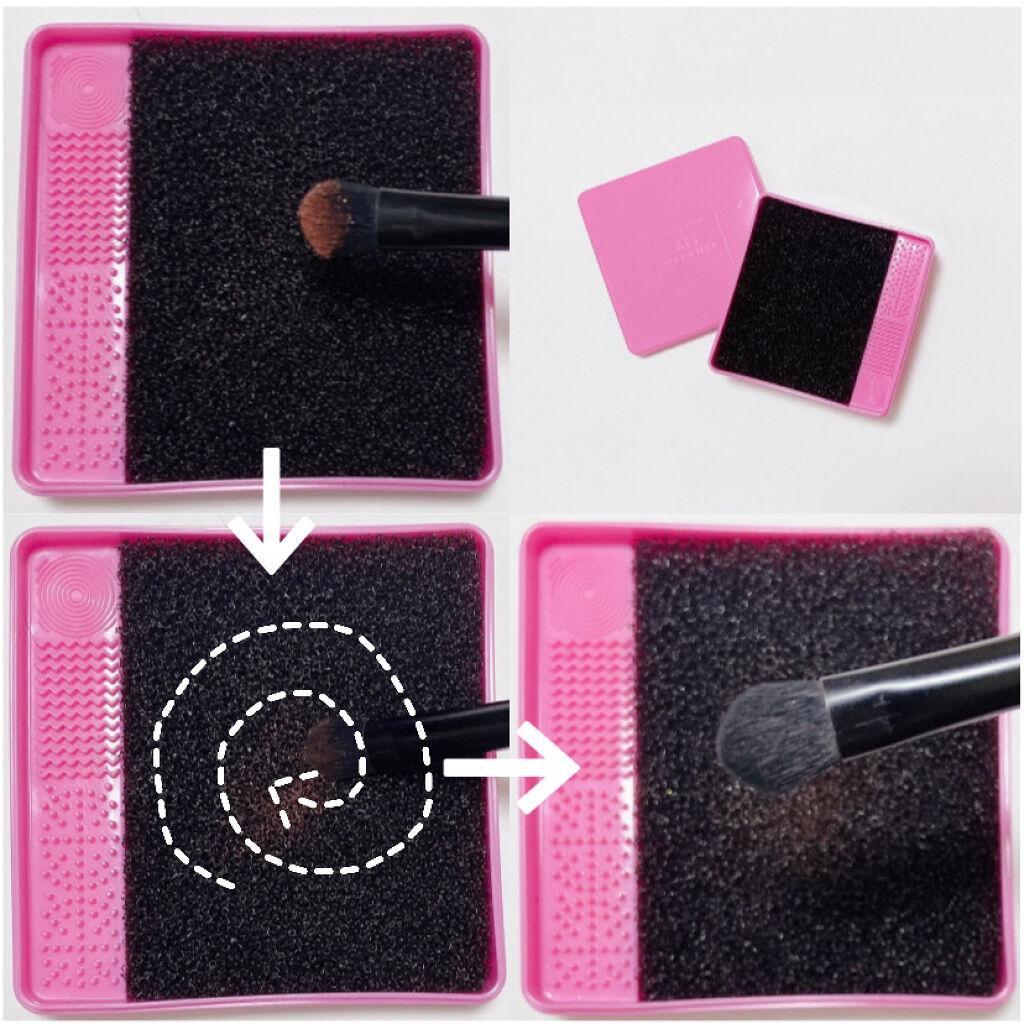 - メイクブラシの汚れ水を使わず簡単に落とします。 さっとこするだけです。 毛が短いブラシの奥までかきだしやすいです。 サッとこするだけ即リセット! メイクブラシのカラーもラメもしっかり落とします。