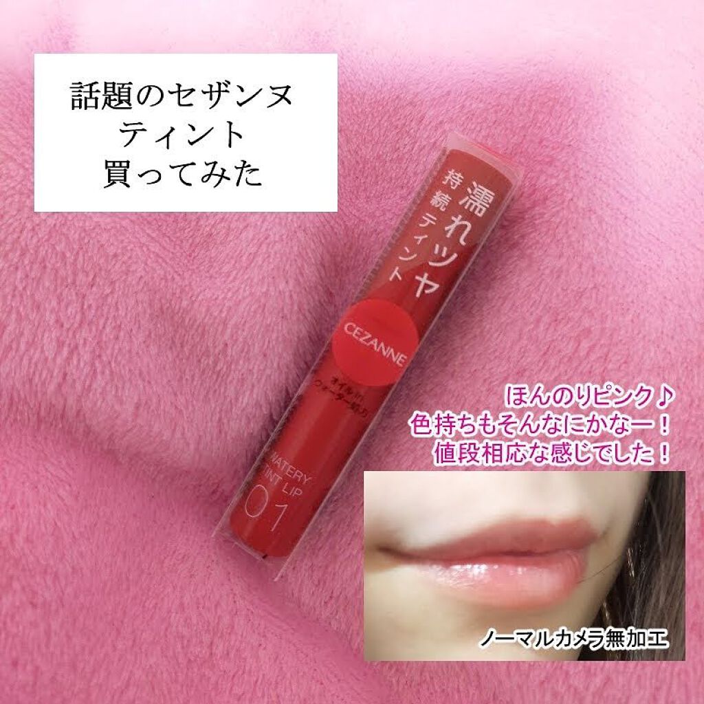 - ツヤ×色×潤いをキープする、セザンヌの新濡れツヤリップ みずみずしい濡れツヤ感ある仕上がりで、発色とツヤが長続きするティントリップです。ティントの発色を透明のベールで覆うリップコートのような処方で、ツヤ感と色をキープします。さらに、唇表面のべたつきは少なく、しっとり潤うオイルinウォーター処方を採用しています。