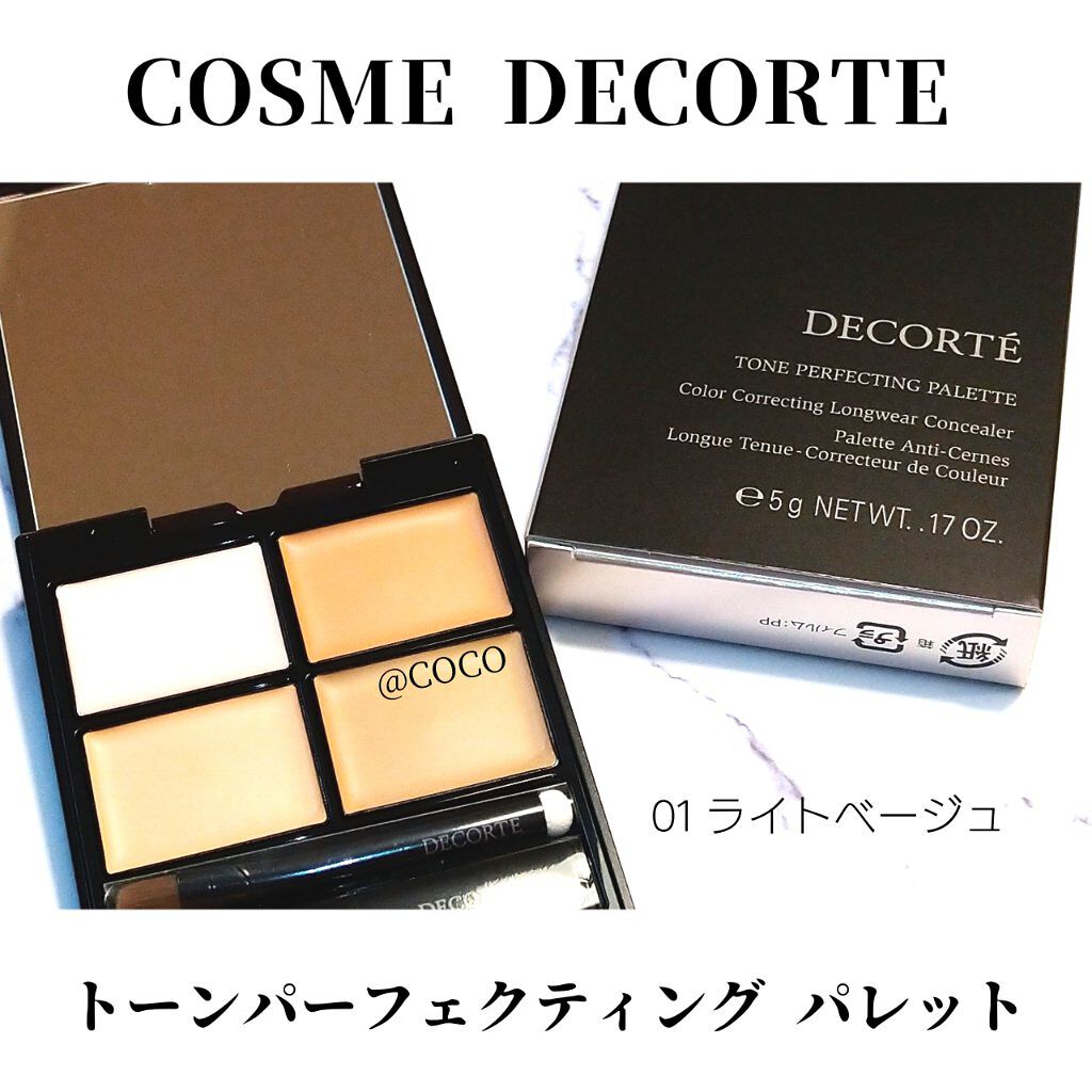 コスメデコルテトーンパーフェクティングパレット01リピートアイテム♡クマ、シミ、ニキビあと、肌の悩みをカバーしながら、左上のカラーで目まわりや鼻筋にツヤをプラスできます♡厚塗り感がなくてナチュラルな仕上がりだと思います!テクスチャーは、しっと...