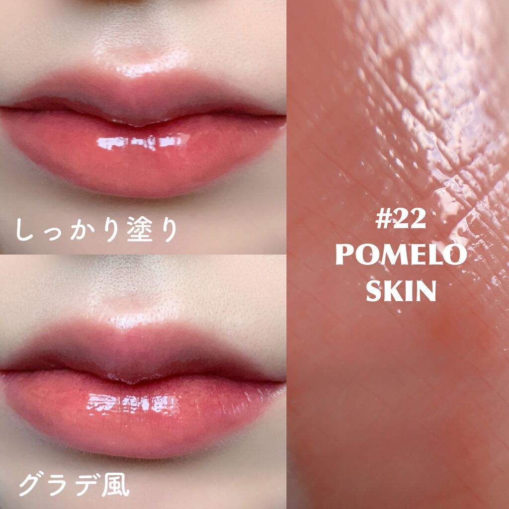 - みずみずしいフルーツがきらめくようなシロップティント ①なめらかで潤いのあるリップを実現 ②果汁のシロップのようなカラー感 ③時間が経つにつれ凸凹を滑らかに密着しボリューム感を演出