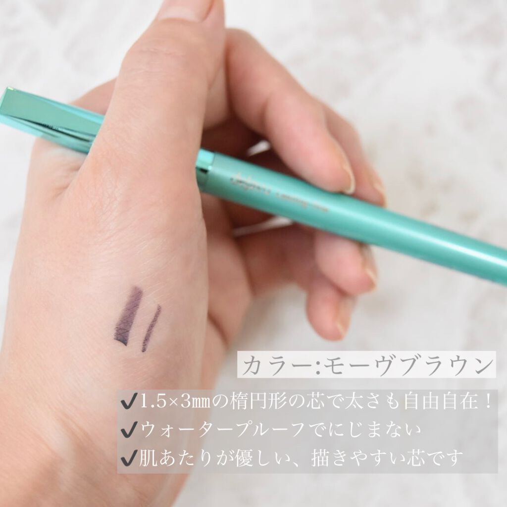 - なめらかなのに、にじみにくい クリームペンシル楕円芯タイプ ・細くも太くも自在に描ける1.5mm×3mmの楕円芯 ・自然なラインが長時間続く*スーパーウォータープルーフタイプ ・肌当たりが非常にやさしく、なめらかに描ける処方を採用 *効果には個人差があります