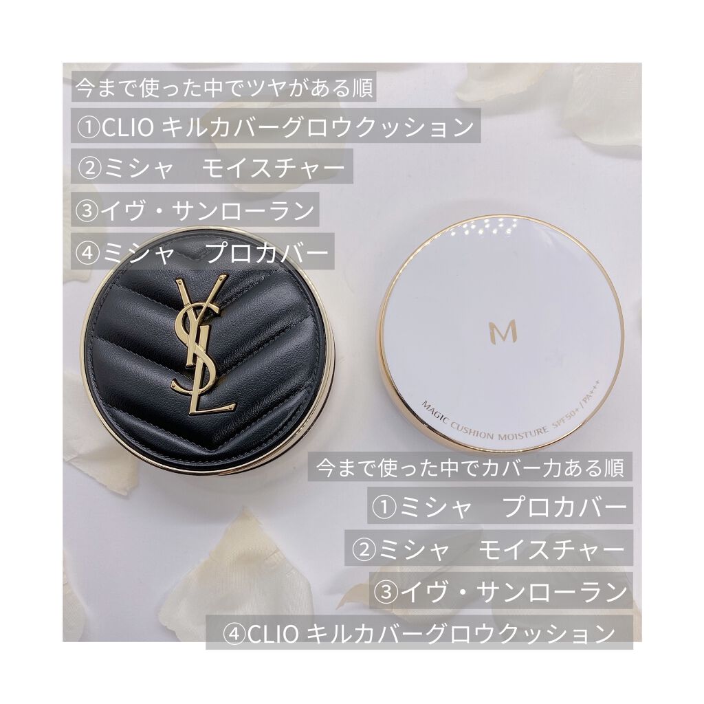 1日中続く、美肌フィルター級の仕上がり。 セミマットな仕上がり🧏🏾♀️ マットの中にツヤ感も入ってるしっかりツヤ肌がいい人には向かない カバー力高めで保湿力も高いです!! バランスの取れたクッションファンデ!! 94%もの自然由来成分を配合。 肌にぴたりと密着し、美しい肌特有の透明感を再現、キープ。