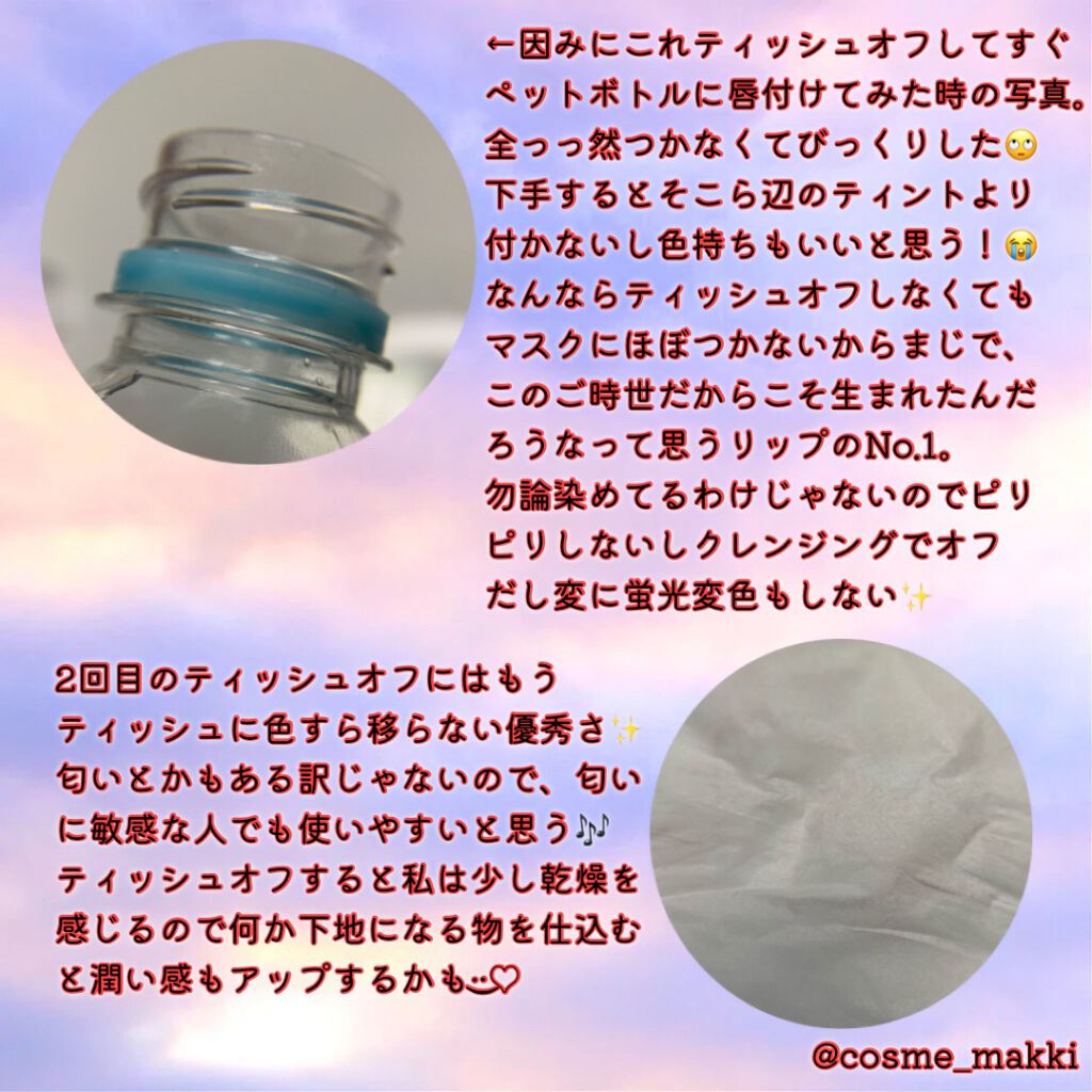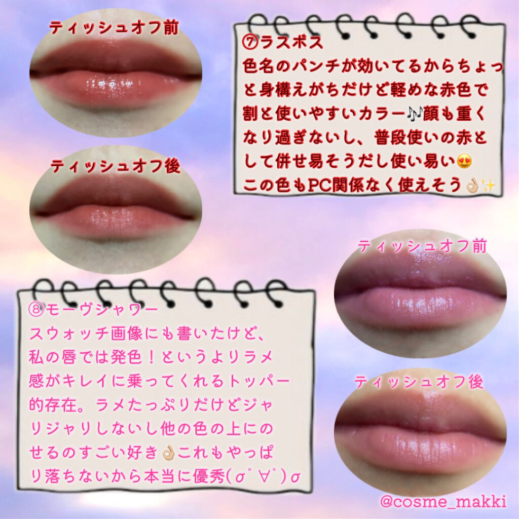 | 口紅・グロス・リップライナーランキング第12位 | シロップのようにとろーりしていて 唇にのせると密着してくれる。じゅわっとした発色とむっちり感が たまらなくよかった⸝⸝⸝♡ | 詳細を見る | |