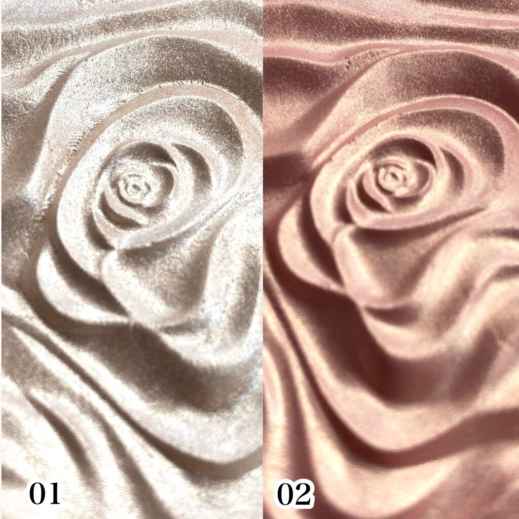 FLORASISHUAXIZI双花彫刻(フタバチョウコク)ハイライトこれは濡れツヤ肌を演出する大人気のハイライト。バラとシルクからインスピレーションを得て、厳選された粉質を使い、浮き彫り工芸で立体感のある「シルクローズ」を演出。繊細なパウダー...