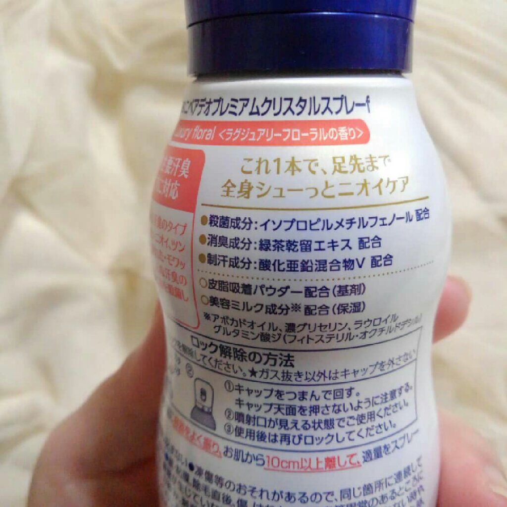 - ニベアから“キレイ女子の新シュー慣”新デオドラントスプレー登場! 汗のニオイを抑えるのは当たり前。美容ミルク成分も配合のデオドラント! 『ニベア デオプロテクト&ケア スプレー』は、これ1本でワキから足先まで全身の気になる部位をデオドラントケア。 殺菌成分(IPMP)配合で、特に気になる3つの汗臭タイプ「すっぱいニオイ」「ツンとしたニオイ」「蒸れた/モワッとくるニオイ」の元になるニオイ菌を殺菌して防臭。汗やニオイを防ぐのはもちろん、皮脂吸収パウダー(基剤)配合により、不快な肌のべたつきも抑え、全身するるんとした肌ざわりに。 【医薬部外品】皮ふ汗臭、わきが(腋臭)、制汗 【内容量】150g ニベア デオプロテクト&ケア スプレー フレグランスフリー ニベア デオプロテクト&ケア スプレー プレシャスサボンの香り ニベア デオプロテクト&ケア スプレー ラグジュアリーフローラルの香り