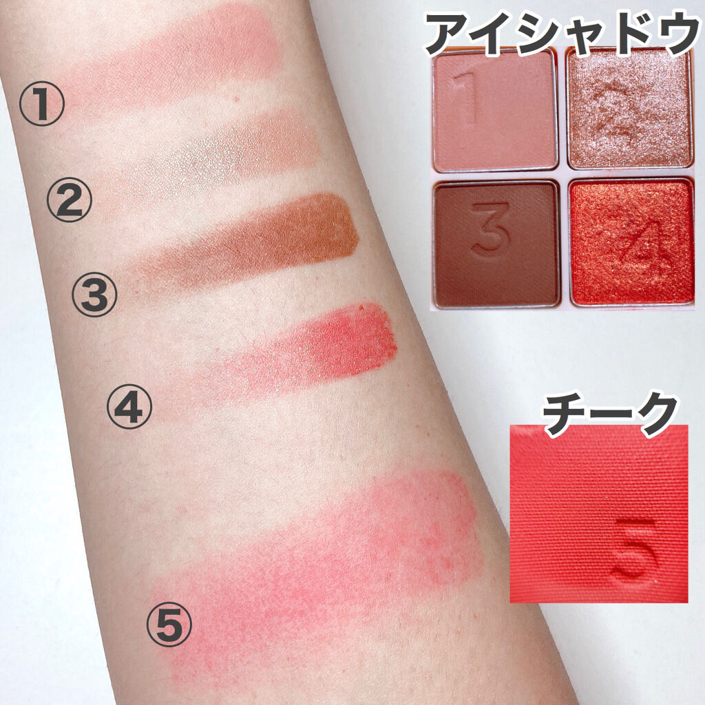アイシャドウとチークが一つになっているので、これひとつで統一感のあるメイクが完成。 持ち運びにも便利なサイズ感です。 鮮やかなレッドチークが印象的、肌にのせると血色感をしっかりプラスしてくれます。発色が良いので少量でもしっかり色づきます。 ポーチインしてサッと使える(直せる)アイテムとしては重宝しそうです♡