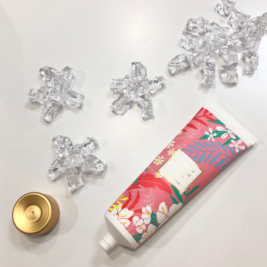 オレンジ、レモン、グレープフルーツなど、たくさんシトラスの中にぽつりぽつりとジャスミン。元気のあるイエローオレンジで、絵の通りの香りパッケージです。容量は150gで、チューブ式クレンジング。合成着色料フリーながらも、柑橘系の精油の色のほんのり...