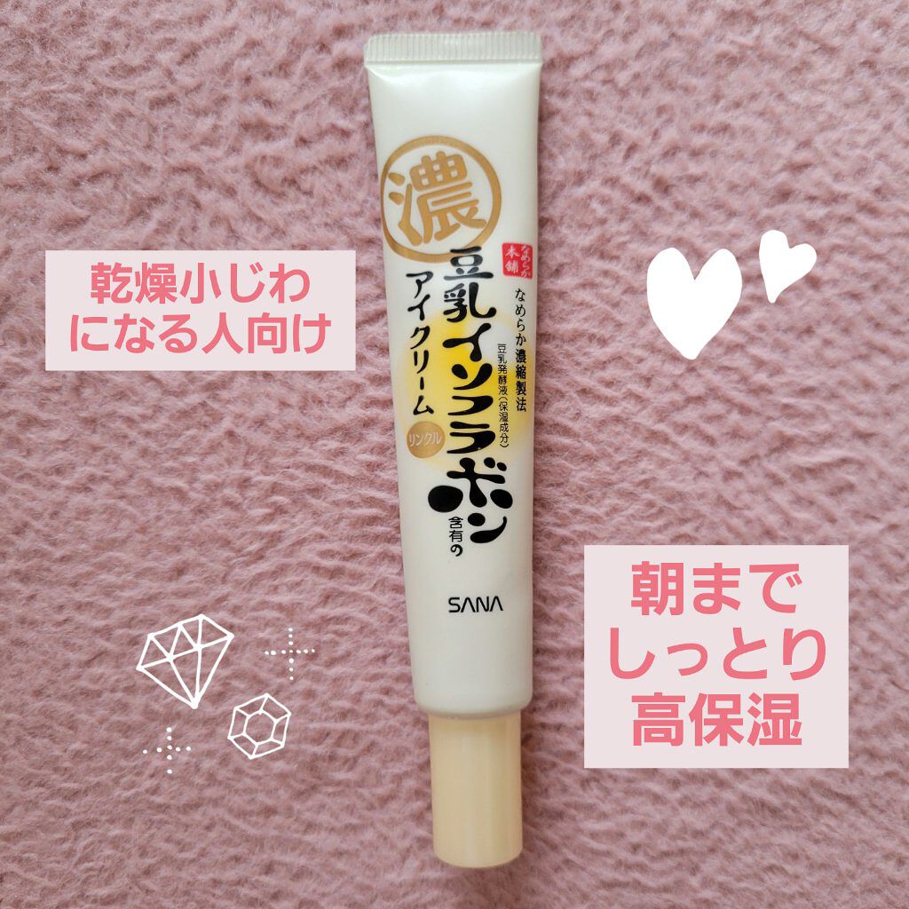 - ピュアレチノール※を新配合!濃厚アイクリームでもっちりハリeyes ※ 保湿成分 「リンクルアイクリーム N」は、『なめらか本舗』オリジナルの豆乳発酵液*1に加え、ピュアレチノール*1とビタミンE誘導体*2を新配合したもっちりとしたハリのある目元に導く「アイクリーム」です。 密着ポリマーがお肌の上で均一な膜を形成し、目元のハリ感をサポート。 毎日のスキンケアに取り入れていただくことで、年齢の出やすい目元をしっかりケアします。 〔①ピュアレチノール*1×豆乳発酵液*1×ビタミンE誘導体*2配合〕 「なめらか本舗」オリジナルのイソフラボン含有の豆乳発酵液*1に加え、ピュアレチノール*1を新配合。 さらに、ビタミンE誘導体(TPNaⓇ)*2も配合し、年齢の出やすい目元をしっかりケアします。 ・ピュアレチノール:ビタミンAの一種でハリのある目元に! ・豆乳発酵液:弾力感・うるおいを与えふっくらした目元に! ・ビタミンE誘導体(TPNaⓇ):お肌にぐんぐん浸透*3してイキイキした目元に! 〔②密着ポリマーで目元にハリ感〕 密着ポリマーがお肌の上で均一な膜を形成します。もっちりとハリのある目元に導きます。 *1 保湿成分 *2 トコフェリルリン酸Na(保湿成分) *3 角層まで