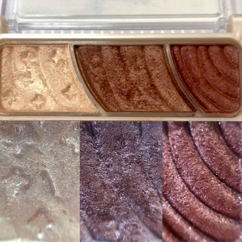 - 3色で簡単に明るく大きな目元に。 しっとり感触のアイシャドウ。 くすみを飛ばす明るさベース、ひとえ・奥二重の方でも幅広く塗れる肌なじみの良い中間色、 濃密高発色の締め色が目の輪郭を強調し大きな目元に。 微細パール配合でくすみを飛ばし、明るい目元へ。