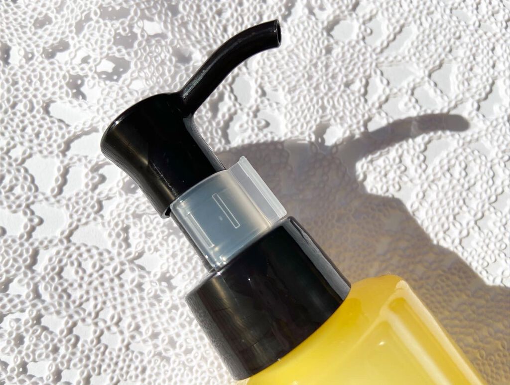 | ほんのり透け感のある黒いオイル。軽くみずみずしいテクスチャのため、 肌の上でするっと伸びる♪ | 詳細を見る | ||