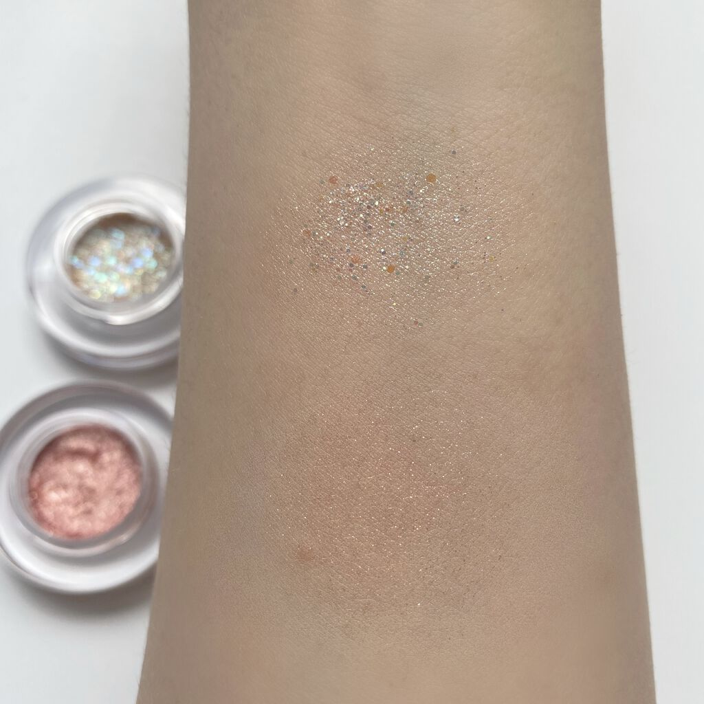 COLORGRAM 🦄MILK BLING HEARTLIGHTER01 PEACH HEART / 02 PINK HEART ☛ ミニサイズ、正方形のハイライト!直接お肌につけて滑らせるように使います🫶🏻ブラシがいらないので持ち運びにも良い!なにしろ見た目も発色もかわいすぎる…!01がシャンパンゴールド系、02がピンク系のキラキラパール! 🦄MILK BLING GLITTER LINER01 sliver tear ☛ベースが透明でグリッターがペンになった画期的なアイテム!ラメ好きとしては持ち運びしやすいし、ナチュラルな仕上がりで使いやすい〜🤍🤍涙袋に細かく引きやすい✨引いた後すぐ乾いてくれる感じがした!重ねれば重ねるほどキランキランになるので調節もしやすいし、ストック欲しい…! 02番のピンクのアイライナーはなぜ買っていないのか、それはその時ピンクが売っていなくて、あとから発売されて…メガ割で買おうかなと思っています❕❕❕