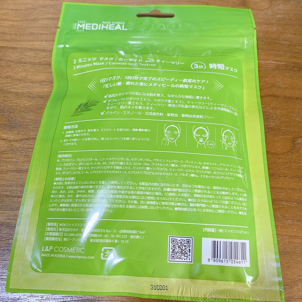 商品詳細情報MEDIHEAL 3ミニッツマスク:カーマイド with ティーツリー