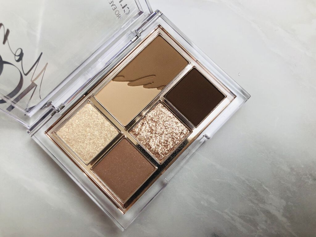- 同系色陰影カラーと上品でクリアなグリッターの組み合わせの必要なカラーだけ詰め込んだミニアイパレット!