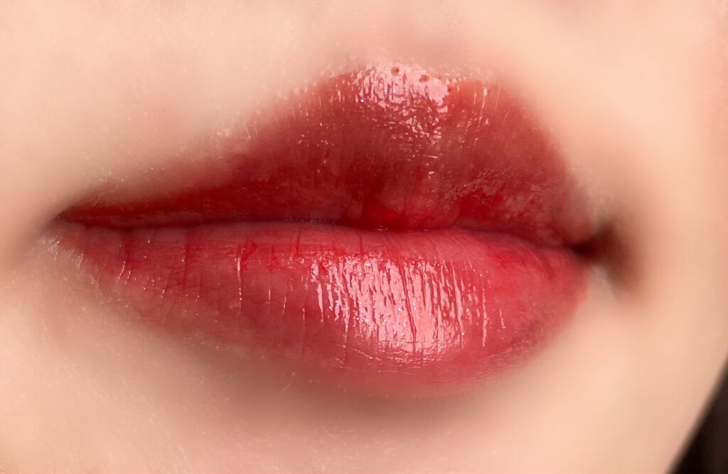espoir クチュールリップティントシャイン LIKEIT💄赤ベースにほんのりピンクを混ぜたような色味が可愛くて素敵ひと塗りでその部分に貼り付いたような感じになるから上手く広げるのが難しかった😂その分落ちにくいけどまばらに落ちたりするから薄...