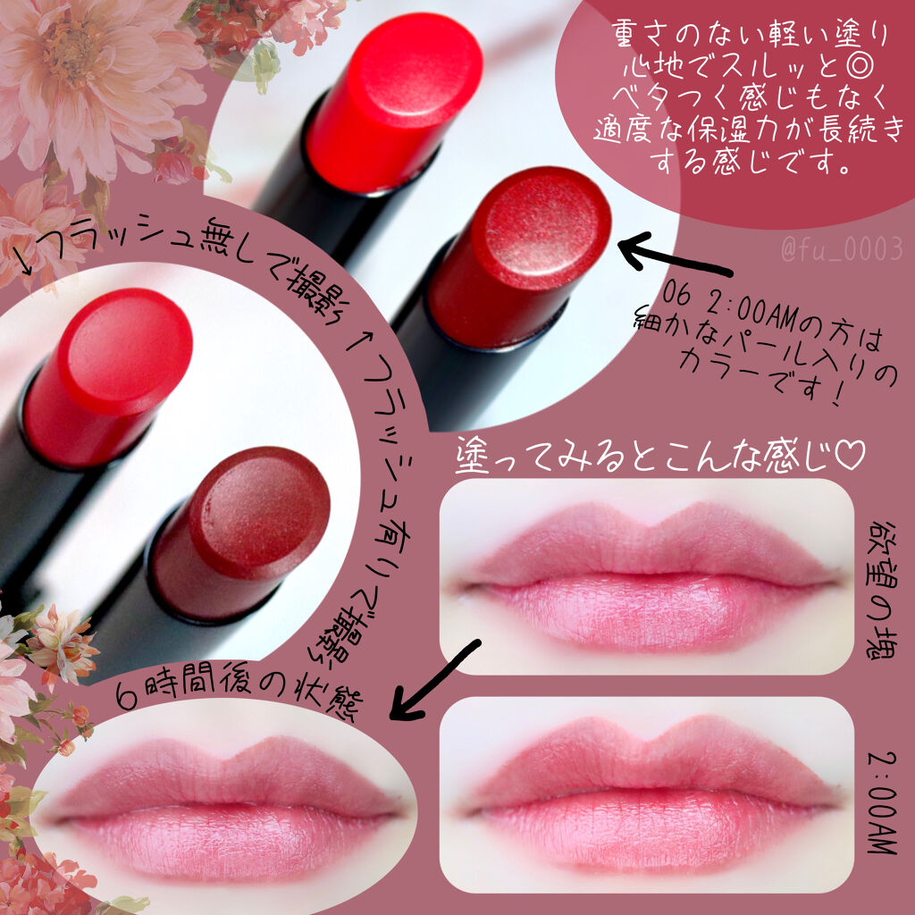 - <01 欲望の塊> テトライソステアリン酸ジペンタエリスリチル、トリ(カプリル酸/カプリン酸)グリセリル、オクチルドデカノール、ラウロイルグルタミン酸ジ(フィトステリル/オクチルドデシル)、ビスアルキル(C16-18)グリセリルウンデシルジメチコン、イソノナン酸イソトリデシル、水添ポリイソブテン、ラウロイルグルタミン酸ジ(オクチルドデシル/フィトステリル/ベヘニル)、パラフィン、合成ワックス、ダイマージリノール酸(フィトステリル/イソステアリル/セチル/ステアリル/ベヘニル)、マイクロクリスタリンワックス、水添マイクロクリスタリンワックス、ヒドロキシステアリン酸エチルヘキシル、トコフェロール、ホホバ種子油、オリーブ果実油、アーモンド油、(エチレン/プロピレン)コポリマー、ポリエチレン、ジメチコン、(+/-)(チタン/酸化チタン)焼結物、マイカ、ラウロイルアスパラギン酸Na、ラウロイルリシン、塩化亜鉛、酸化チタン、酸化鉄、水酸化Al、硫酸Ba、トリイソステアリン酸イソプロピルチタン、酸化スズ、ホウケイ酸(Ca/Al)、合成フルオロフロゴパイト、黄4、黄5、赤104(1)、赤201、赤202 <02 ピンクバナナ> テトライソステアリン酸ジペンタエリスリチル、トリ(カプリル酸/カプリン酸)グリセリル、オクチルドデカノール、ラウロイルグルタミン酸ジ(フィトステリル/オクチルドデシル)、ビスアルキル(C16-18)グリセリルウンデシルジメチコン、イソノナン酸イソトリデシル、水添ポリイソブテン、ラウロイルグルタミン酸ジ(オクチルドデシル/フィトステリル/ベヘニル)、パラフィン、合成ワックス、ダイマージリノール酸(フィトステリル/イソステアリル/セチル/ステアリル/ベヘニル)、マイクロクリスタリンワックス、水添マイクロクリスタリンワックス、ヒドロキシステアリン酸エチルヘキシル、トコフェロール、ホホバ種子油、オリーブ果実油、アーモンド油、(エチレン/プロピレン)コポリマー、ポリエチレン、ジメチコン、(+/-)(チタン/酸化チタン)焼結物、マイカ、ラウロイルアスパラギン酸Na、ラウロイルリシン、塩化亜鉛、酸化チタン、酸化鉄、水酸化Al、硫酸Ba、トリイソステアリン酸イソプロピルチタン、酸化スズ、ホウケイ酸(Ca/Al)、合成フルオロフロゴパイト、黄4、黄5、赤104(1)、赤201、赤202 <03 陽炎> テトライソステアリン酸ジペンタエリスリチル、トリ(カプリル酸/カプリン酸)グリセリル、オクチルドデカノール、ラウロイルグルタミン酸ジ(フィトステリル/オクチルドデシル)、ビスアルキル(C16-18)グリセリルウンデシルジメチコン、イソノナン酸イソトリデシル、水添ポリイソブテン、ラウロイルグルタミン酸ジ(オクチルドデシル/フィトステリル/ベヘニル)、パラフィン、合成ワックス、ダイマージリノール酸(フィトステリル/イソステアリル/セチル/ステアリル/ベヘニル)、マイクロクリスタリンワックス、水添マイクロクリスタリンワックス、ヒドロキシステアリン酸エチルヘキシル、トコフェロール、ホホバ種子油、オリーブ果実油、アーモンド油、(エチレン/プロピレン)コポリマー、ポリエチレン、ジメチコン、(+/-)(チタン/酸化チタン)焼結物、マイカ、ラウロイルアスパラギン酸Na、ラウロイルリシン、塩化亜鉛、酸化チタン、酸化鉄、水酸化Al、硫酸Ba、トリイソステアリン酸イソプロピルチタン、酸化スズ、ホウケイ酸(Ca/Al)、合成フルオロフロゴパイト、黄4、黄5、赤104(1)、赤201、赤202 <04 パンプキンワイン> テトライソステアリン酸ジペンタエリスリチル、トリ(カプリル酸/カプリン酸)グリセリル、オクチルドデカノール、ラウロイルグルタミン酸ジ(フィトステリル/オクチルドデシル)、ビスアルキル(C16-18)グリセリルウンデシルジメチコン、イソノナン酸イソトリデシル、水添ポリイソブテン、ラウロイルグルタミン酸ジ(オクチルドデシル/フィトステリル/ベヘニル)、パラフィン、合成ワックス、ダイマージリノール酸(フィトステリル/イソステアリル/セチル/ステアリル/ベヘニル)、マイクロクリスタリンワックス、水添マイクロクリスタリンワックス、ヒドロキシステアリン酸エチルヘキシル、トコフェロール、ホホバ種子油、オリーブ果実油、アーモンド油、(エチレン/プロピレン)コポリマー、ポリエチレン、ジメチコン、(+/-)(チタン/酸化チタン)焼結物、マイカ、ラウロイルアスパラギン酸Na、ラウロイルリシン、塩化亜鉛、酸化チタン、酸化鉄、水酸化Al、硫酸Ba、トリイソステアリン酸イソプロピルチタン、酸化スズ、ホウケイ酸(Ca/Al)、合成フルオロフロゴパイト、黄4、黄5、赤104(1)、赤201、赤202 <05 ダークフィグ> テトライソステアリン酸ジペンタエリスリチル、トリ(カプリル酸/カプリン酸)グリセリル、オクチルドデカノール、ラウロイルグルタミン酸ジ(フィトステリル/オクチルドデシル)、ビスアルキル(C16-18)グリセリルウンデシルジメチコン、イソノナン酸イソトリデシル、水添ポリイソブテン、ラウロイルグルタミン酸ジ(オクチルドデシル/フィトステリル/ベヘニル)、
