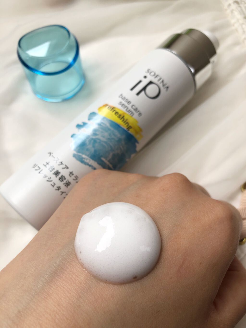 泡で出てくる美容液というのが衝撃的で、きめ細かな泡をつぶさないように顔全体になじませていくと一枚膜をまとったようなしっとりもちもちした肌になっていく感じがして肌の奥までしっかり浸透してる感が個人的には感じられました。 洗顔後にこの土台美容液のみしか塗ってないのにツヤも出ている気がしてこれは使い続けてみたいなと思ったアイテムでした。 容器は振らずに使用出来るみたいなのでそこも注意⚠️かなと思いました。