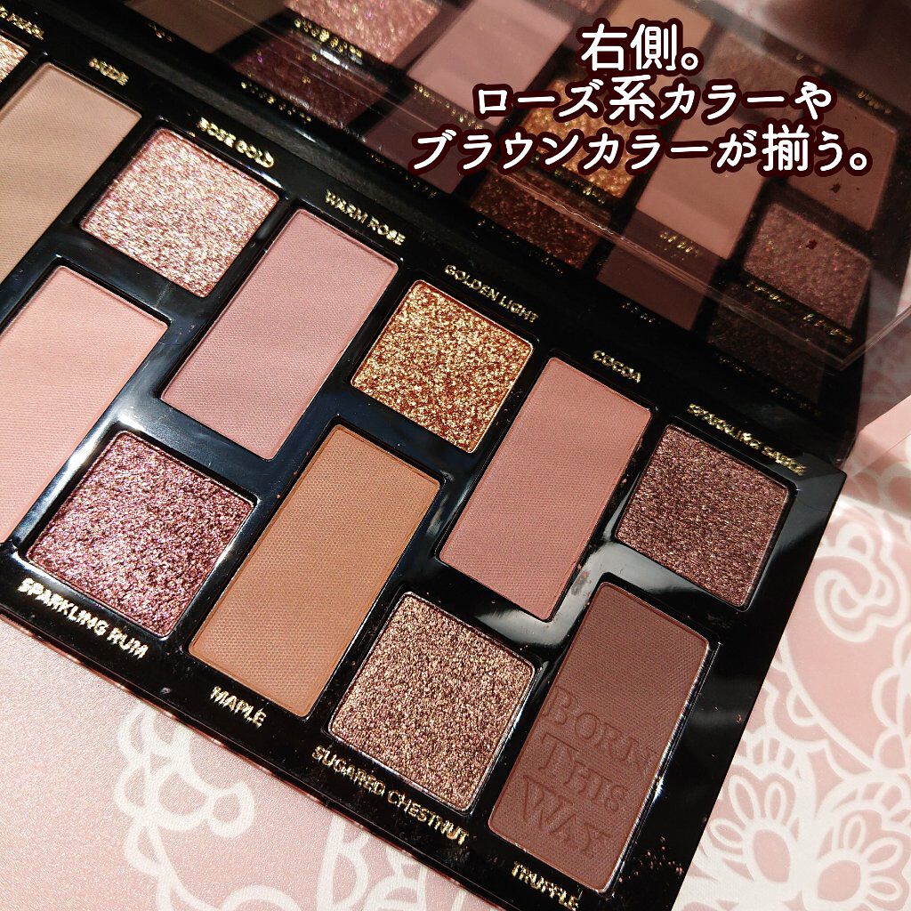 - ボーン ディス ウェイ シリーズからファンデーションの美しいアンダートーンにインスパイアされた16色いりアイシャドウ パレット。 リッチな発色と多様な質感でまるで生まれつきの美しさ。 バターのようにクリーミーでなじませやすいフォーミュラ。なじみやすいマットから色気溢れるメタリックまで、そして合わせやすい美しく仕上がるカラーでナチュラルからグラマラスまでのアイルックも自由自在。 「ボーン ディス ウェイ」シリーズでおなじみのお肌に嬉しいココナッツウォーター、アルペンローゼ、ヒアルロン酸*配合。 *ヒアルロン酸配Na(保湿)