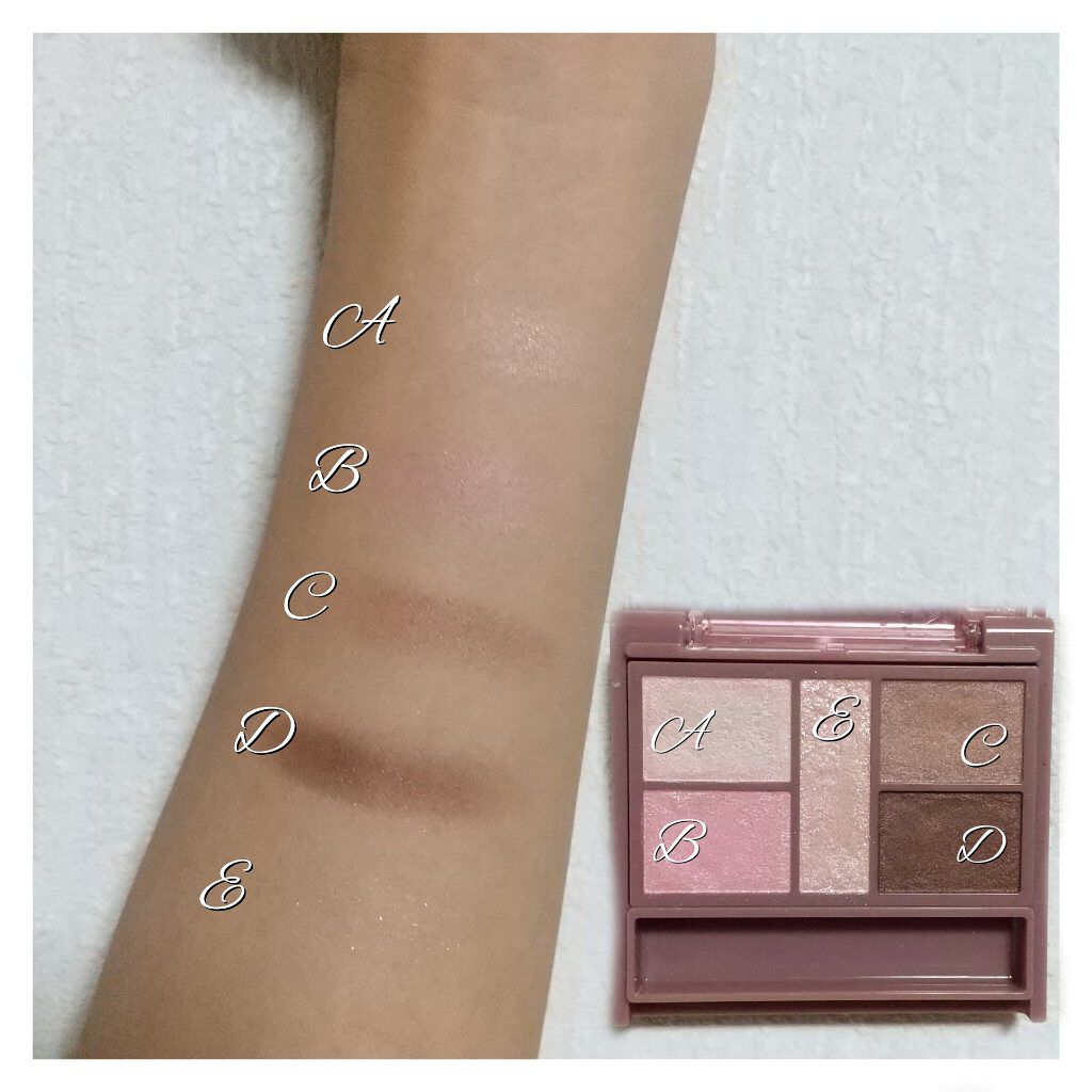 - 1枚のパレットで2つのスタイルが完成! 5色の欲ばりアイシャドウ♥ メインカラーを選んで2つのスタイルが楽しめる! A→B→D でスタイル1 A→C→D でスタイル2 繊細な粉質が、しっとりとまぶたに密着して色落ちを防ぎます。 透明感のあるキラうるトッピングジュエル(繊細ラメ)は、気分によってトッピング!