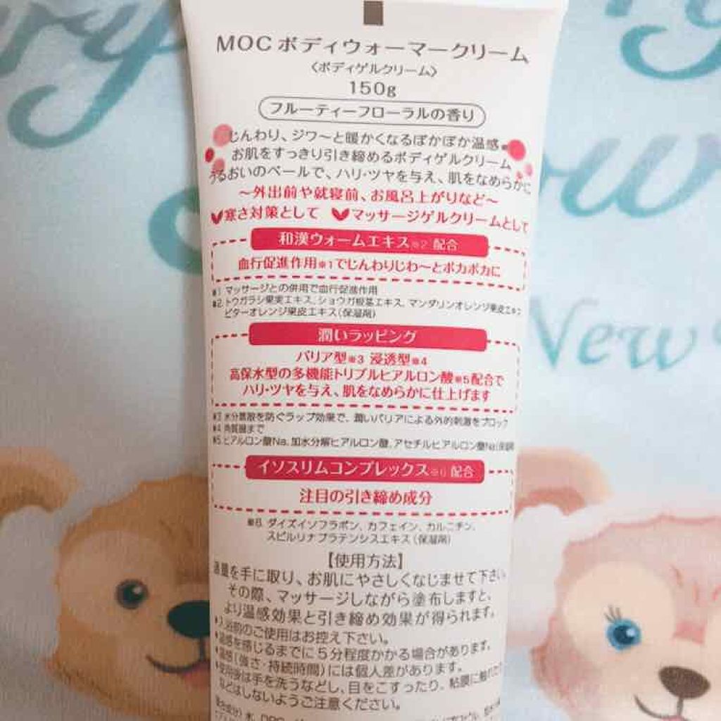 ❄️MOCボディウォーマークリーム〈ボディゲルクリーム〉150g私は冷え性なので気になって買ってみました!冬の期間使用してみました!高校生だったのでスカートで足がとても寒かったのですが、このクリームのおかげで寒さにあまり気にせずにいれました!...