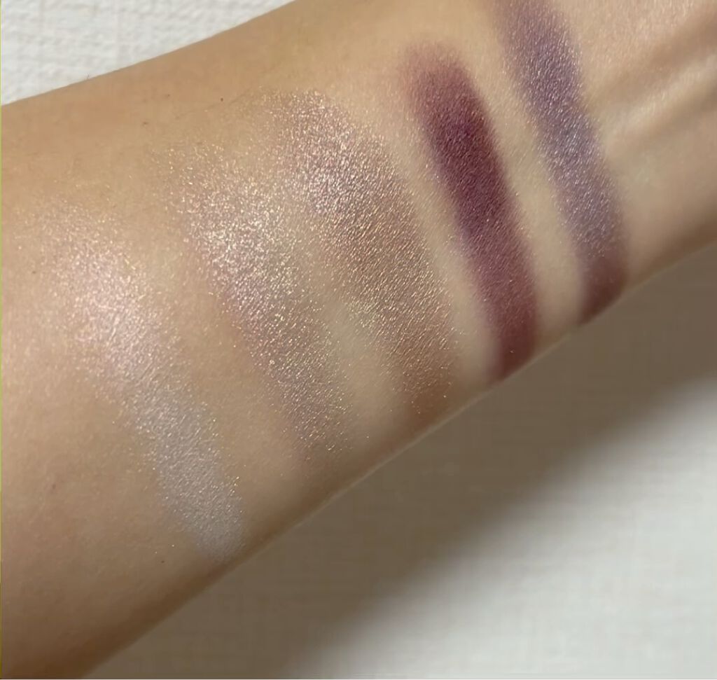 左上:ホワイトゴールドのパールとラメ(パール強め) 右上:偏光っぽいピンクのパールとラメ 左下:ホワイトベースにピンク系の偏光パール 左下:コーラルとシルバーのパールとラメ(ラメ強め) 左下のパールが、パッと見発色は弱いのですが すごく自然かつ絶妙なツヤ感を出してくれます。 こちらをCゾーンや目頭・鼻筋・顎先に、 右上のピンク系をチークの上部に重ねるのがお気に入り✨ 左上・左下はしっかり輝きを出したい時や、 アイシャドウ・チークに重ねて使うのもオススメです⭕️
