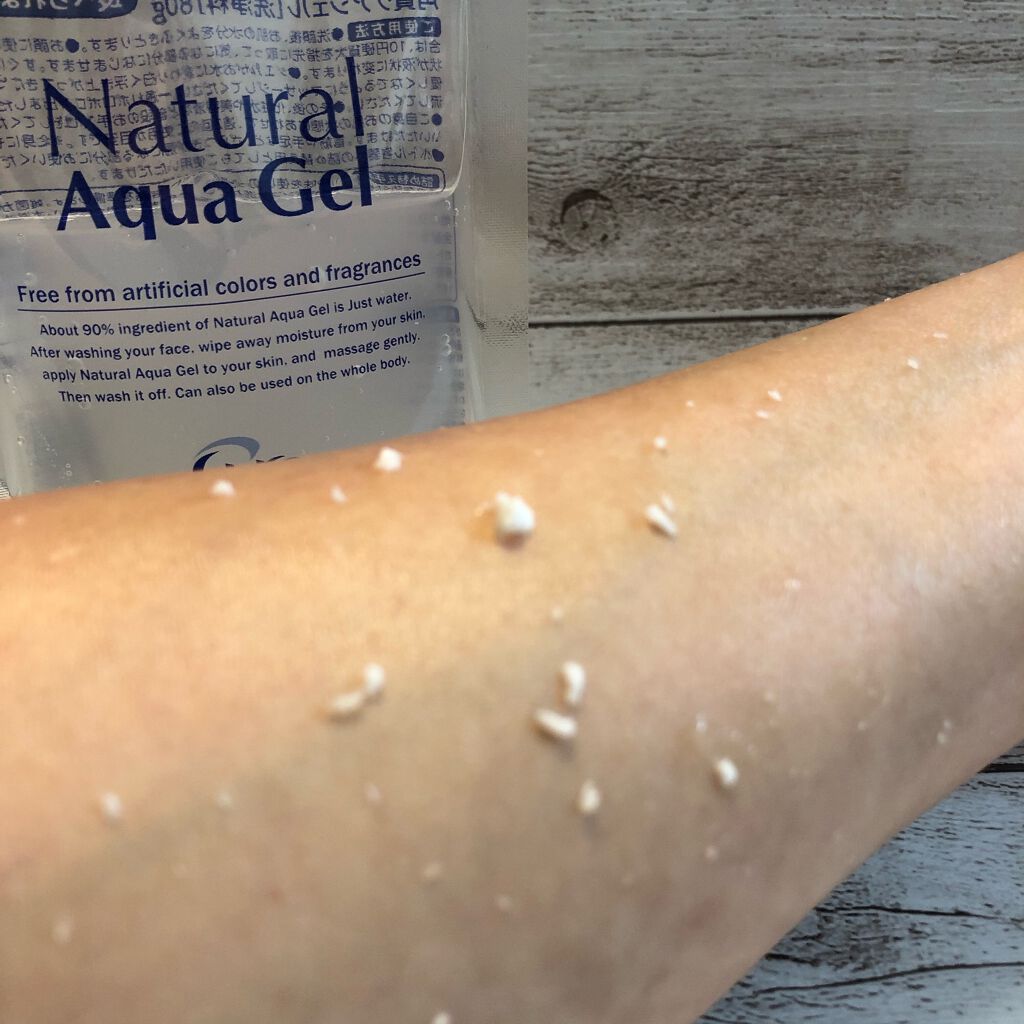 ∞∞ナチュラルアクアジェル∞∞成分の90%が水でできているのでサラッとしているのですが、角質が溜まっていそうな部分に塗ってクルクルすると、ポロポロした消しカスみたいなものが出てきます。洗い流すとツルツルとして、肌がちょっと明るくなる感じ。化粧...