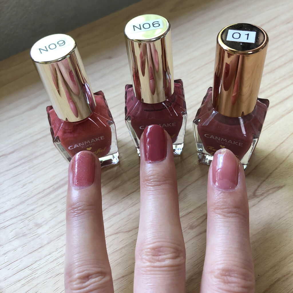 ✔️ベースコート こだわりはないですが、薄いカラーを使うときは透明のベースコートを使用しています。 今回はキャンメイクカラフルネイルズNBC ベースコート(薄いぴんく)を使用しています。 ✔️カラー1回目(基本的に私は2回塗ります) 液は少量で、かすれてもいいので全体に塗ります。 ✔️カラー2回目 液は気持ち多め。ハケの跡が残らないくらいように気をつけて塗ります。 ✔️トップコート 超愛用品ジェルボリュームトップコート これでもかってくらいたっぷり塗ります。 ジェルみたいにぷっくり感をもっと出したかったらトップコートの二度塗りもありですが、わたしはあまり厚すぎるのも乾きぐ遅くなってしまうのでトップは1回にしています♡