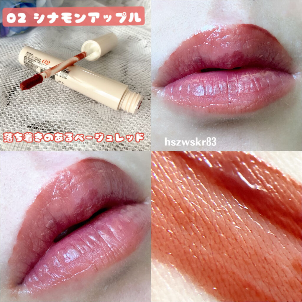 - ツヤ膜でLIPカラーを閉じ込める 塗ってから「5分」でかわいい唇完成♥ツヤがあふれ出るオイルinウォーターティント 水に対して約2倍のオイル成分を配合した「オイルinウォーター処方」 時間経過でツヤ膜がじゅわ~っとあふれ出し、 まるでグロスを重ねたような仕上がりに。みずみずしいツヤ感が持続します。 塗布後、時間経過(※)で色が定着して食べても飲んでも血色長持ち。 (※定着には個人差があります。弊社5分推奨) 高密着で唇に溶け込むように色づきます。 コップやペットボトルへの色移りがしにくくなります。