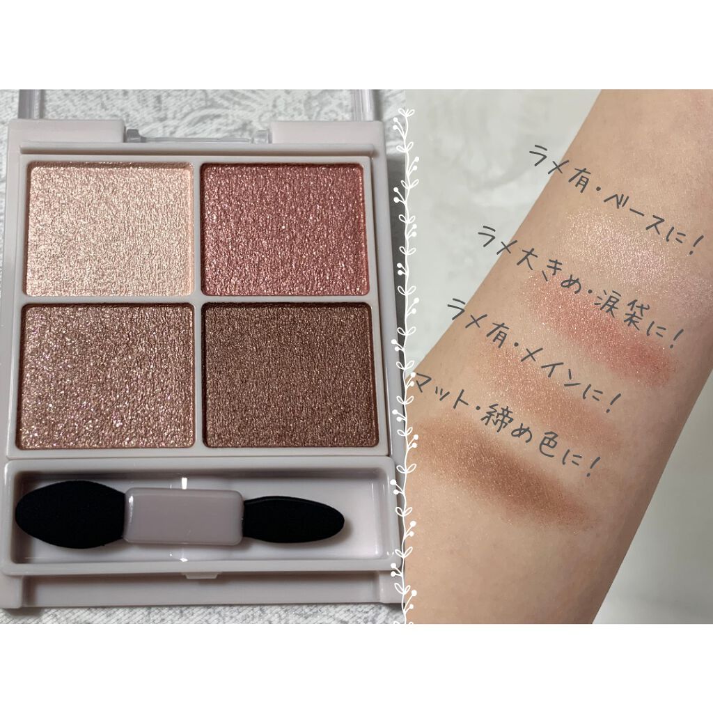 - しっとり密着!リッチな質感! 透けツヤ4色アイシャドウ シルクのようなツヤ感とスフレのようななめらかさ。 繊細なパールが配合されたやわらかなしっとりパウダーで、上品な目元に仕上がります。 ※2023年8月〜パッケージ順次リニューアル。