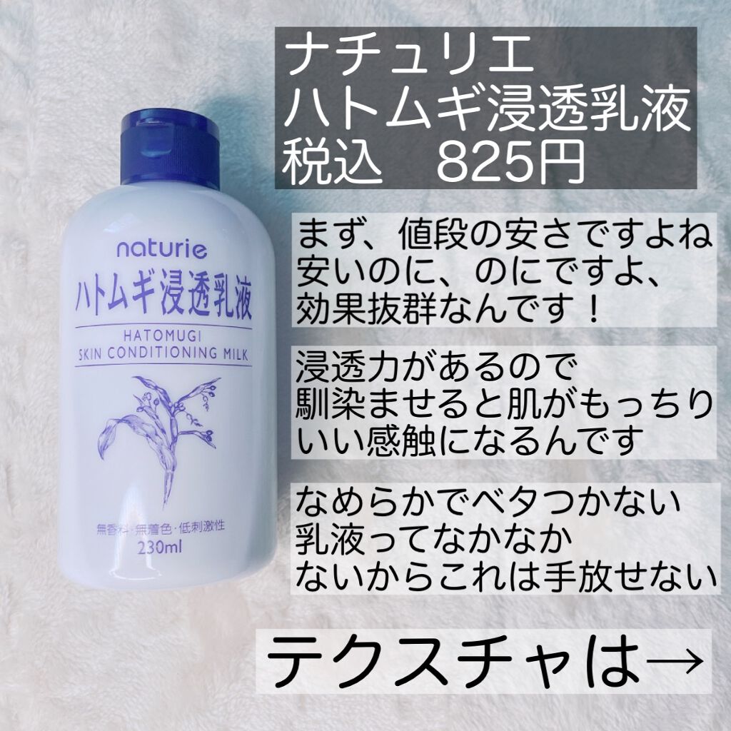 乳液も最高!全身もっちり肌へ✼••┈┈••✼••┈┈••✼••┈┈••✼••┈┈••✼ナチュリエハトムギ浸透乳液ナチュリエスキンコンディショニングミルク通常サイズ✼••┈┈••✼••┈┈••✼••┈┈••✼••┈┈••✼ハトムギといえば化粧水...