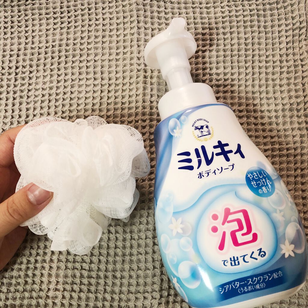 ⋆⋆❤️ミルキィ泡で出てくるボディソープやさしいせっけんの香りワンプッシュで出る泡の量◎泡の質◎今までに使った泡ボディソープの中でダントツ1番好き💯✨️このせっけんの香りも好き♡やっぱり昔からある昔から使ってる牛乳石鹸凄い🐮🥛🐄❤💙⋆⋆#ミル...